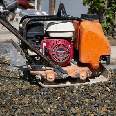 ワッカー/振動プレートを使用して、土を圧縮して、土が固まるまで多孔性になります。 その後、周囲と同じ高さに戻るように、約15mmの鋭い砂またはダスト花崗岩をその区域に追加し、再度圧縮します。1平方メートルあたりに約25kgの砂が必要になります。