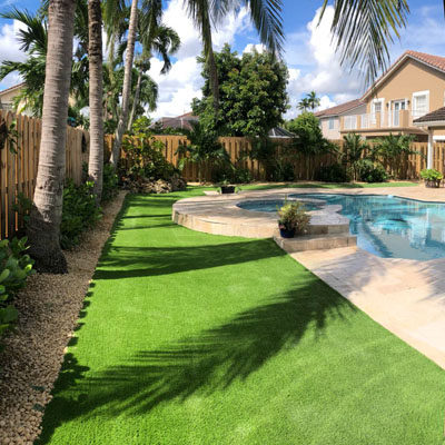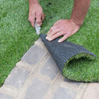人工芝を木材の周囲の隅の1つから、平らでぴんと張って、人工芝を敷き、敷設プロセスを開始します。